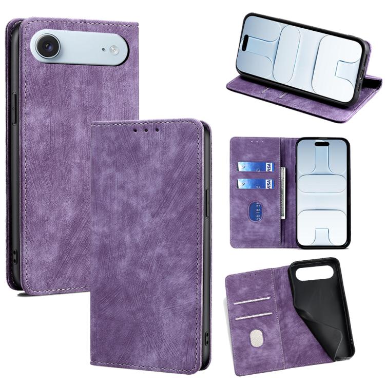 Funda de cuero magnética con cepillo antirrobo RFID para iPhone Air (morado)