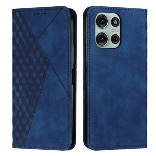Funda de Cuero Magnética para Motorola Moto G75 con Diseño de Diamante (Azul)