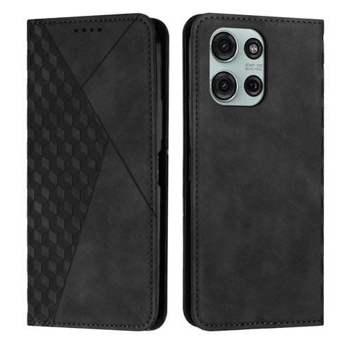 Funda de Cuero Magnética para Motorola Moto G75 con Diseño de Diamante (Negra)