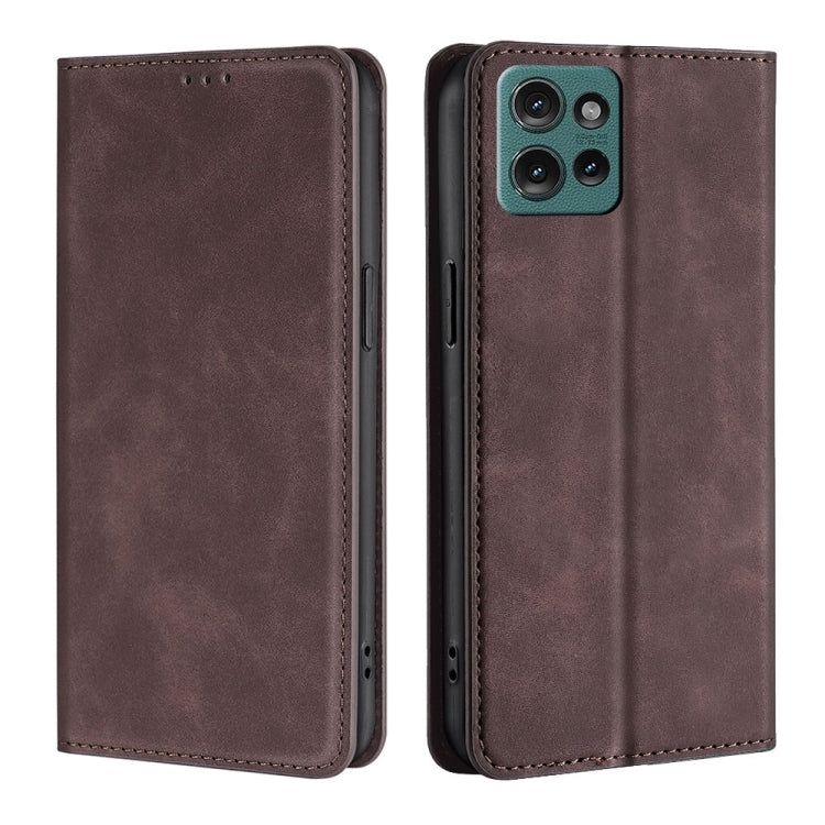 Funda de Cuero Magnética con Tacto de Piel para Motorola Edge 50 5G (Marrón Oscuro)