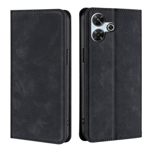 Funda de Cuero Magnética con Tacto de Piel para Redmi 13 4G (Negra)