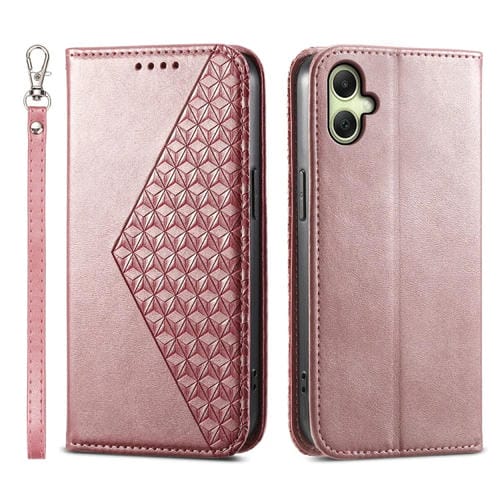 Funda Cuero Magnética Samsung Galaxy A06 4G Textura Becerro Cuadrícula Cúbica (Oro Rosa)