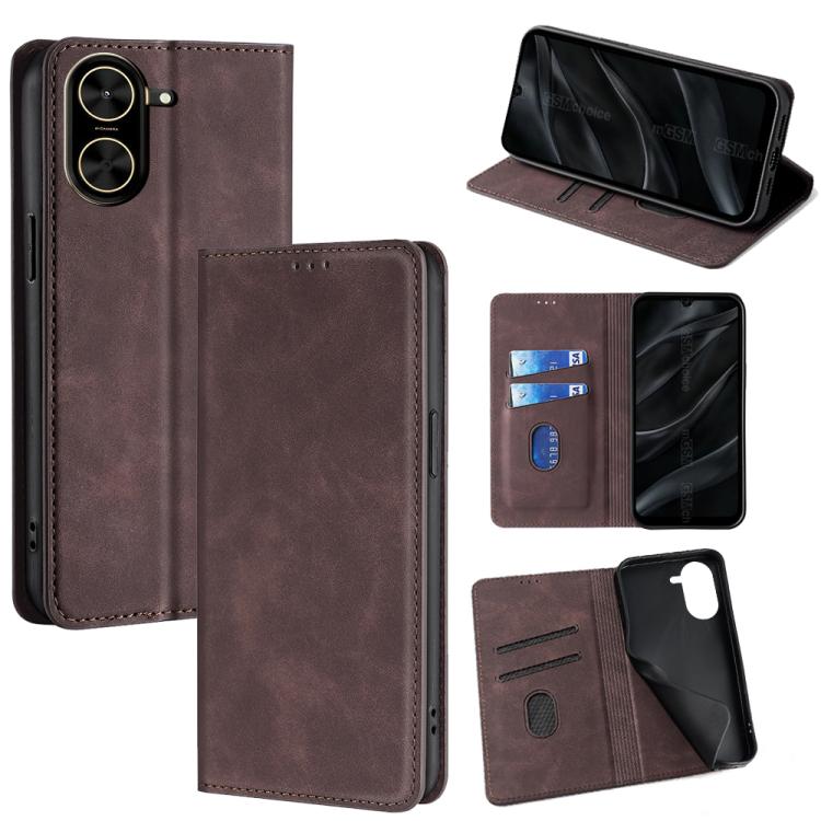 Funda de cuero magnética con textura de piel para Redmi A5 4G (171,7 mm) (marrón oscuro)