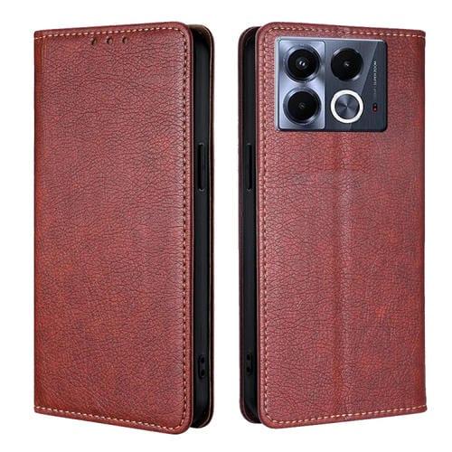 Funda de Cuero Magnética para Infinix Note 40 5G con Acabado Brillante y Aceite Sólido (Marrón)
