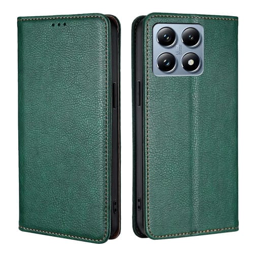 Funda de Cuero Magnética para Teléfono Xiaomi 14T Pro 5G con Acabado Brillante y Color Sólido (Verde)