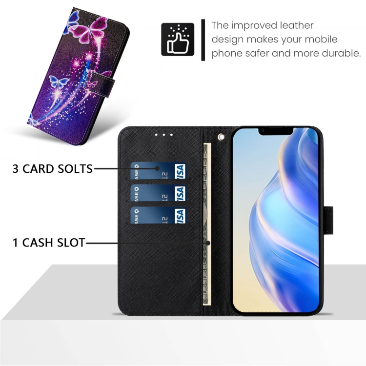 Funda de Cuero para iPhone 16 Pro con Diseño de Dibujo Artístico Mariposa de Fuegos Artificiales (Color)