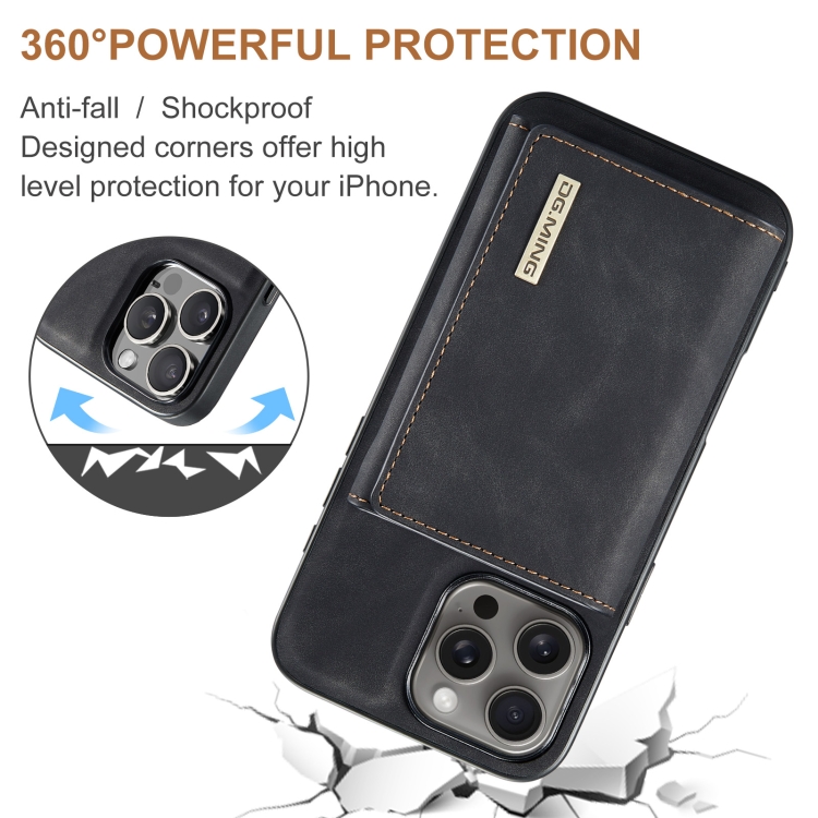 Funda de Cuero Dg.Ming M1 Series para iPhone 16 Pro Max con Billetera MultiTarjetas y 3 Pliegues (Negro)
