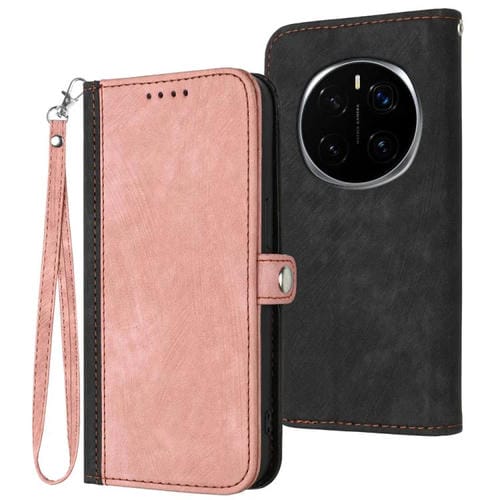 Funda de Cuero para Honor Magic7 Pro con Correa de Mano y Hebilla Lateral Doble Plegable (Rosa)