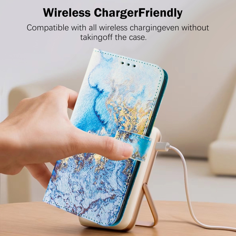 Funda de Cuero para Teléfono Samsung Galaxy S21 FE 5G Patrón Dibujo Artístico (Mármol Oceánico)
