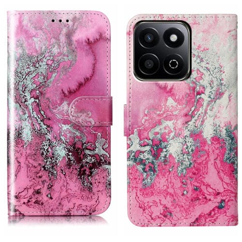 Funda de Cuero para Honor X7C 4G/200 con Patrón Mármol y Dibujo a Color (Agua de Mar Rosa)