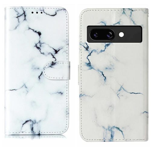 Funda de Cuero para Google Pixel 9A con Patrón Mármol y Dibujo de Colores (Mármol Blanco)