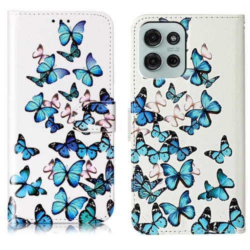 Funda de Cuero Motorola Moto G75 con Patrón Mármol y Mariposas Azules