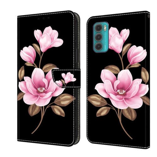 Funda de Cuero Pintada a Mano para Motorola Moto G60 (Flores Negras)