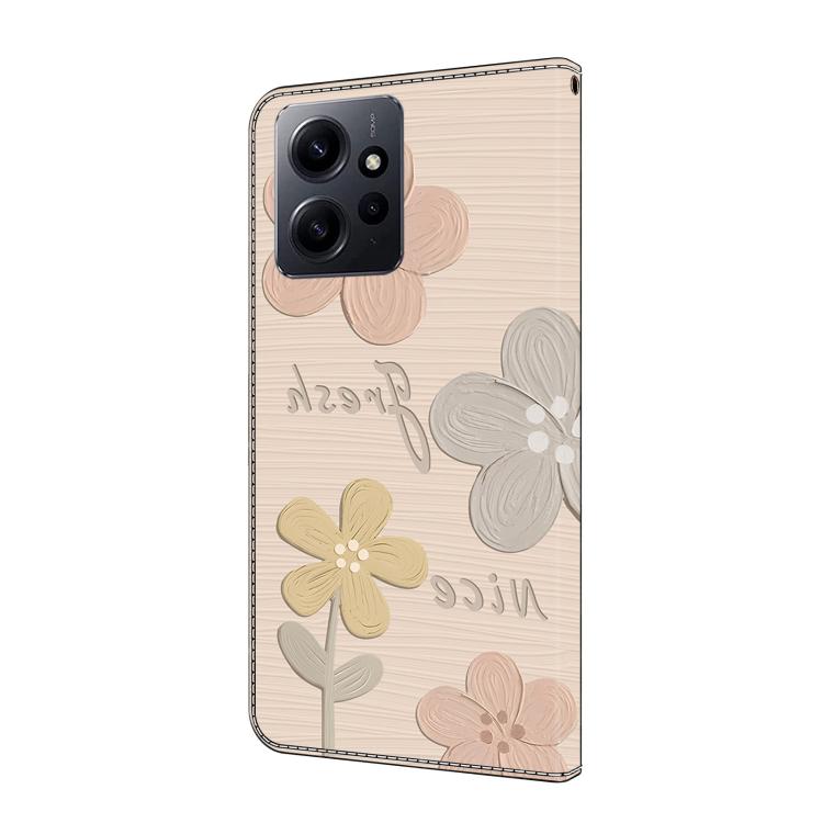 Funda de Cuero Pintada a Mano para Redmi Note 12 4G Global Fresh (Flores Beige)