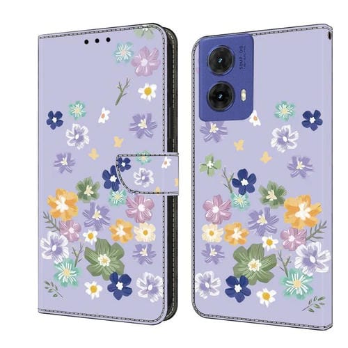 Funda de Cuero pintada a mano para Motorola Moto G85 (Floral Morado)