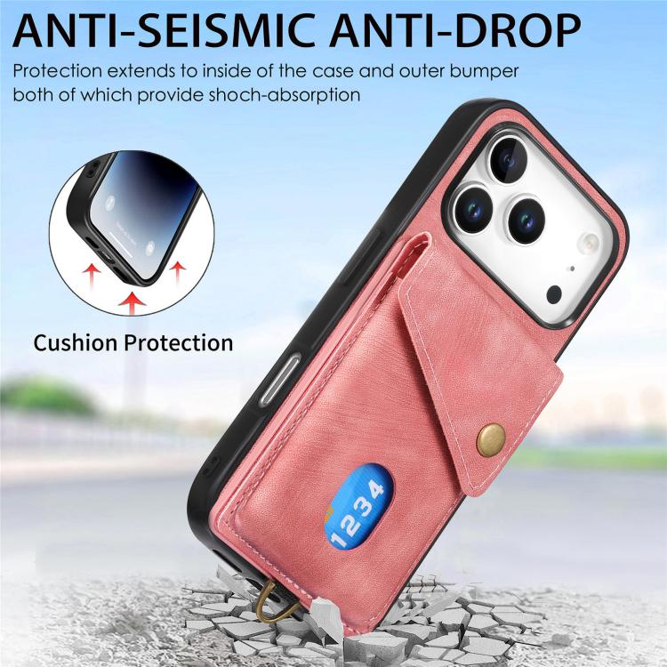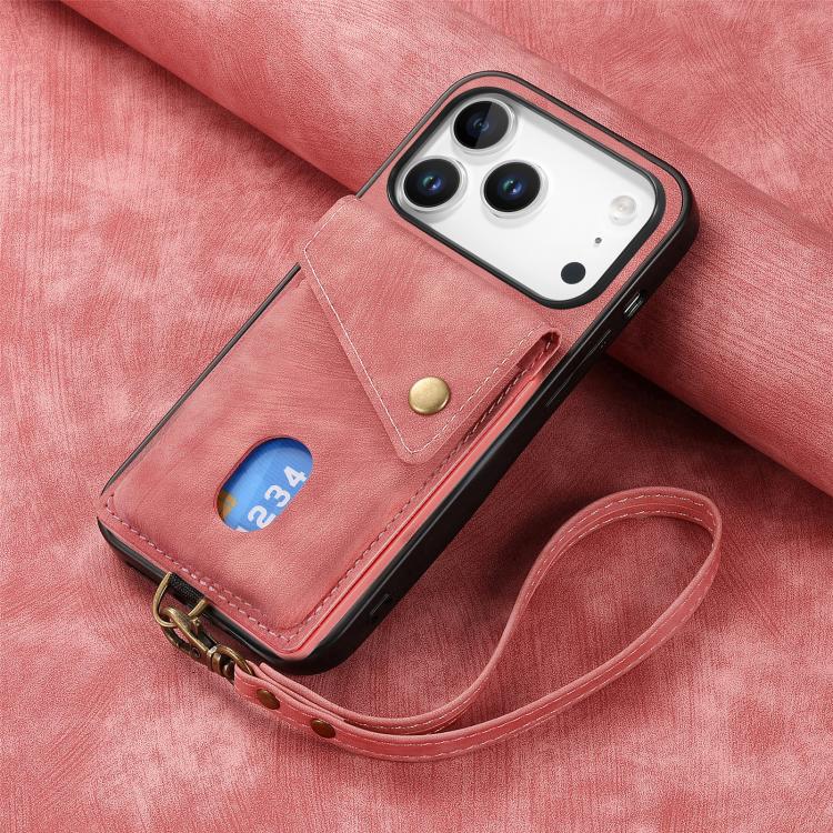 Funda de cuero plegable estilo billetera retro para iPhone 17 Pro Max con correa (rosa)