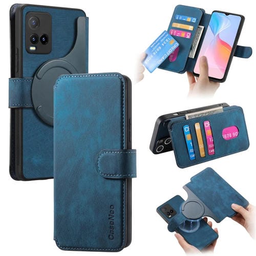 Funda de Cuero Retro Antirrobo con Rfid y Magsafe para Vivo Y21S/Y32/Y21T/Y3T (Azul)