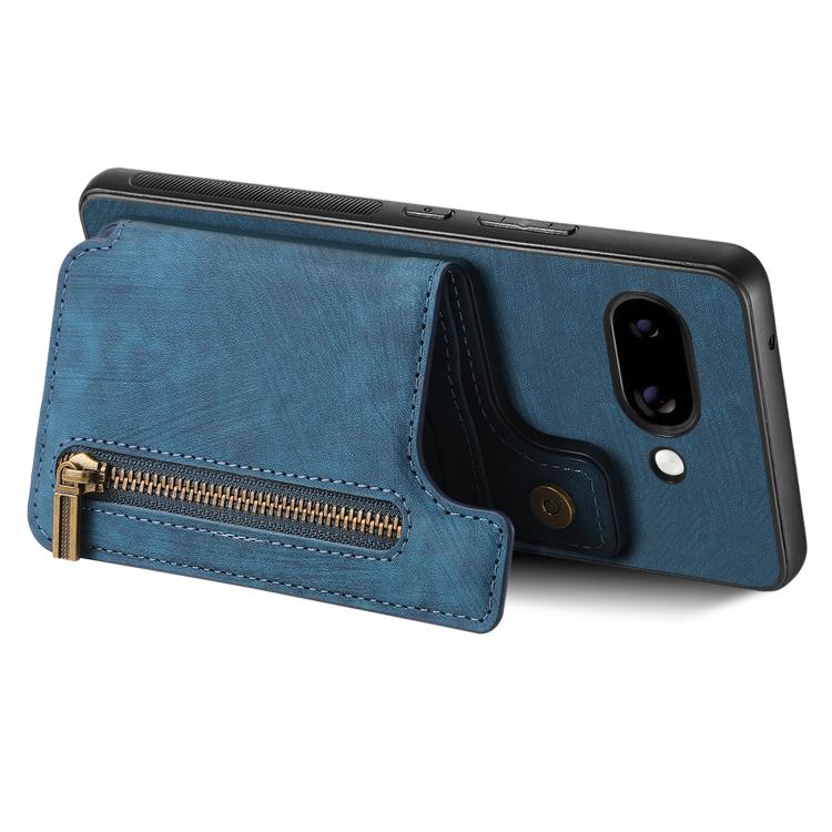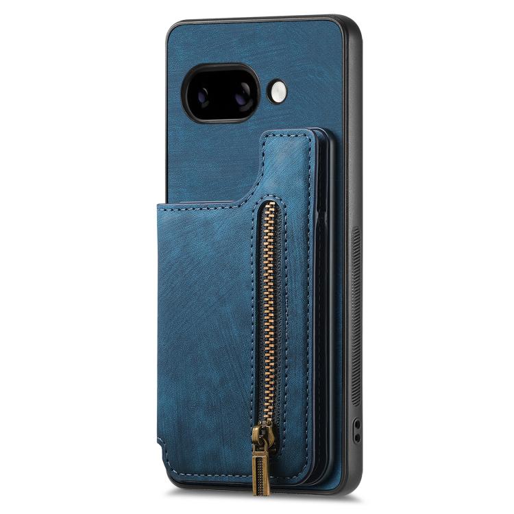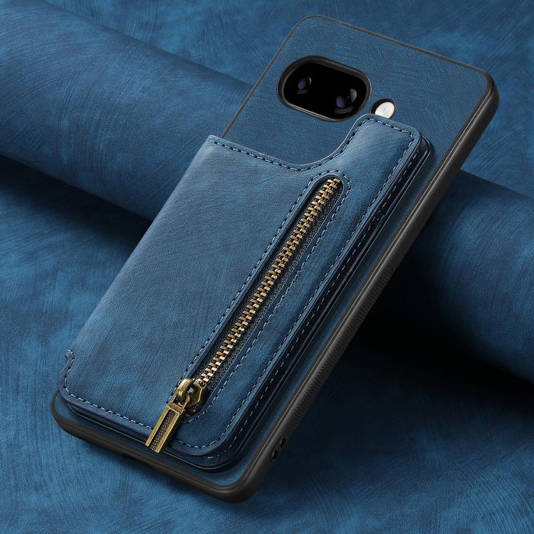 Funda de Cuero Retro con Cremallera y Billetera para Google Pixel 9A (Azul)