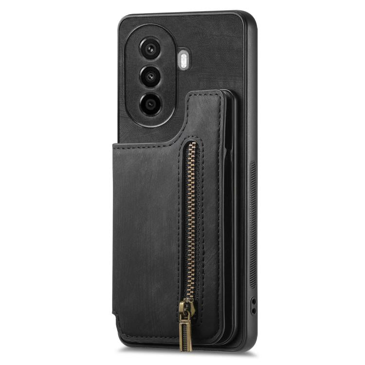 Funda de Cuero Retro con Cremallera y Billetera para Huawei Nova Y70/Y70+ (Negra)