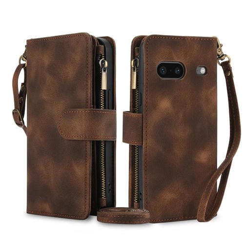 Funda de Cuero Rfid con Cremallera para Google Pixel 7 Dream con 9 Tarjetas y Cordón (Marrón)