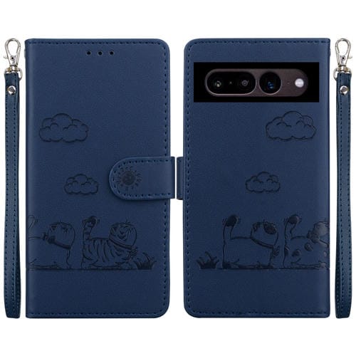 Funda de Cuero Rfid para Google Pixel 7 con Diseño de Gatos (Azul)