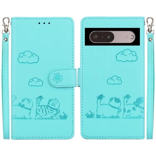 Funda de Cuero Rfid para Google Pixel 7 Pro con Diseño de Gatos (Verde)