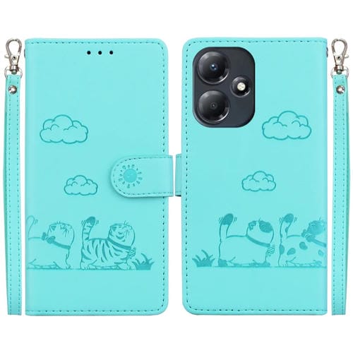 Funda de Cuero Rfid para Infinix Hot 30 Play con Diseño de Gatos (Verde)