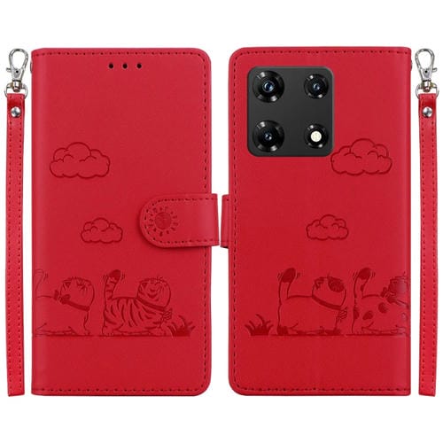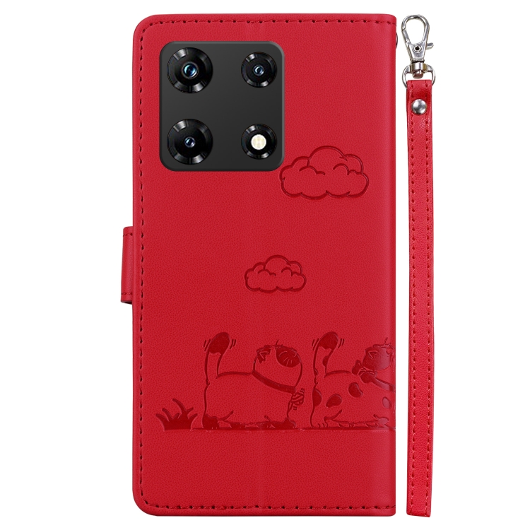 Funda de Cuero Rfid para Infinix Note 30 Pro con Diseño de Gatos (Rojo)