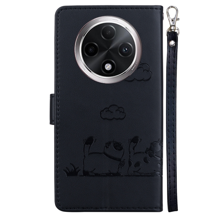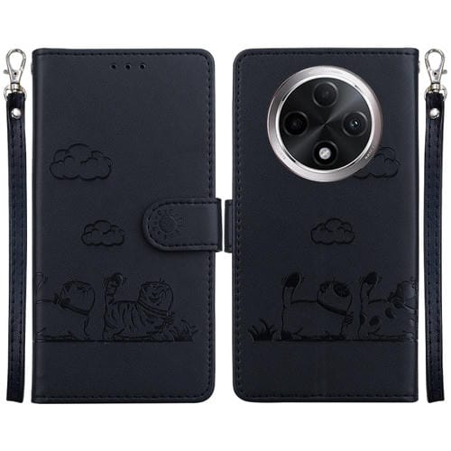 Funda de Cuero Rfid con Diseño de Gatos para Oppo A3 Pro 5G Global (Negra)