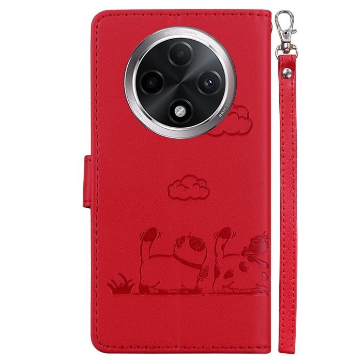 Funda de Cuero Rfid con Diseño de Gatos para Oppo A3 Pro 5G Global (Roja)