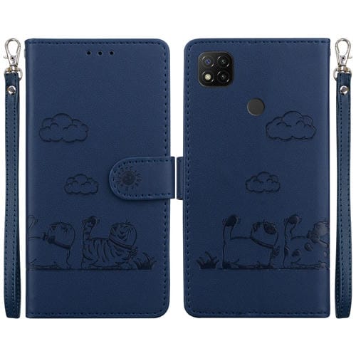 Funda de Cuero Rfid con Diseño de Gatos para Redmi 9C/9 Activ (Azul)
