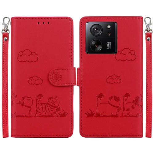 Funda de Cuero Rfid con Diseño de Gatos Lindos para Redmi K60 Ultra (Roja)