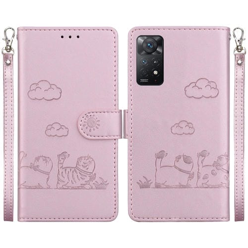 Funda de Cuero Rfid con Diseño de Gatos para Redmi Note 12 Pro 4G (Oro Rosa)