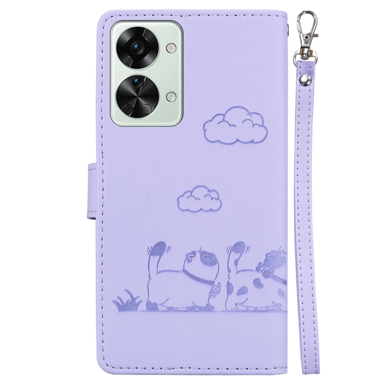 Funda de Cuero Rfid para OnePlus Nord 2T con Diseño de Gatos (Morado)