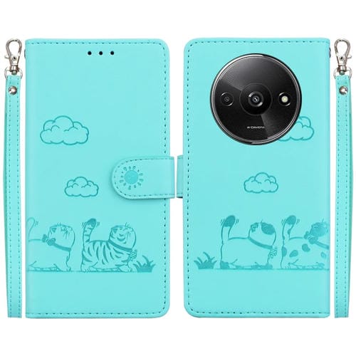 Funda de Cuero Rfid con Diseño de Gatos para Redmi A3 (Verde)