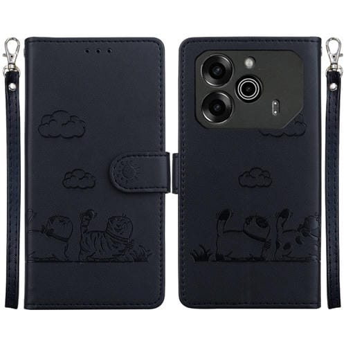 Funda de Cuero Rfid para Tecno Pova 6 5G y Pova 6 Pro 5G con Diseño de Gatos (Negra)