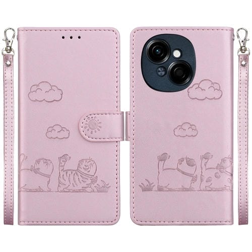 Funda de Cuero Rfid para Tecno Spark Go 1 Pop 9 con Diseño de Gatos (Oro Rosa)