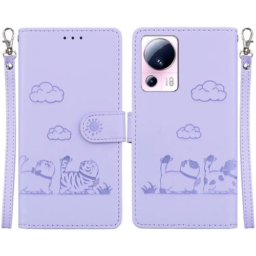 Funda de Cuero Rfid con Diseño de Gatos para Xiaomi 13 Lite/Civi 2 (Morada)