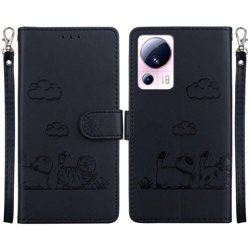Funda de Cuero Rfid con Diseño de Gatos para Xiaomi 13 Lite/Civi 2 (Negra)