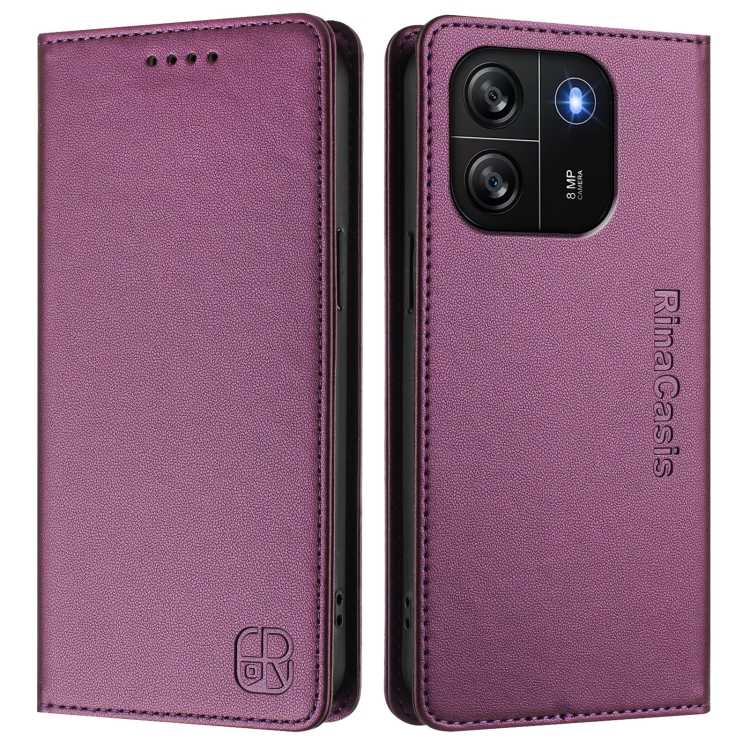 Funda de Cuero Rfid con Doble Pliegue y Succión Magnética para BlackView Wave 6C Rc01 (Violeta)
