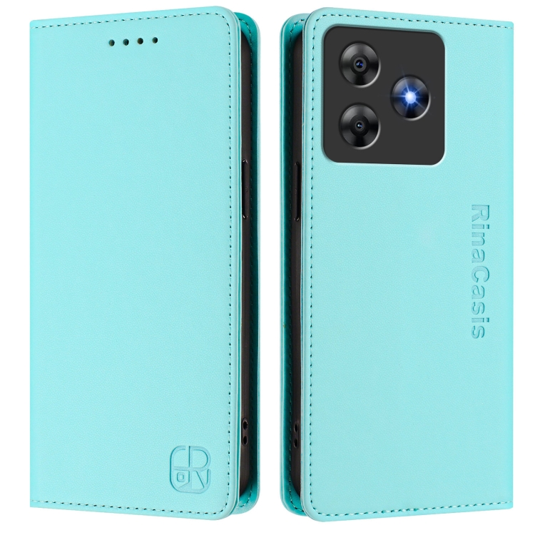 Funda de Cuero Rfid con Doble Pliegue y Succión Magnética para BlackView Wave 8C Rc01 (Verde Menta)
