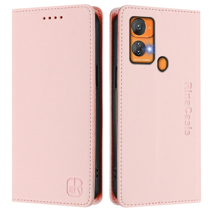 Funda de Cuero Rfid con Doble Pliegue y Succión Magnética para Oukitel C33 Rc01 (Rosa)
