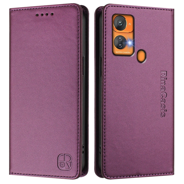Funda de Cuero RFID con Doble Pliegue y Succión Magnética para Oukitel C33 Rc01 (Violeta)
