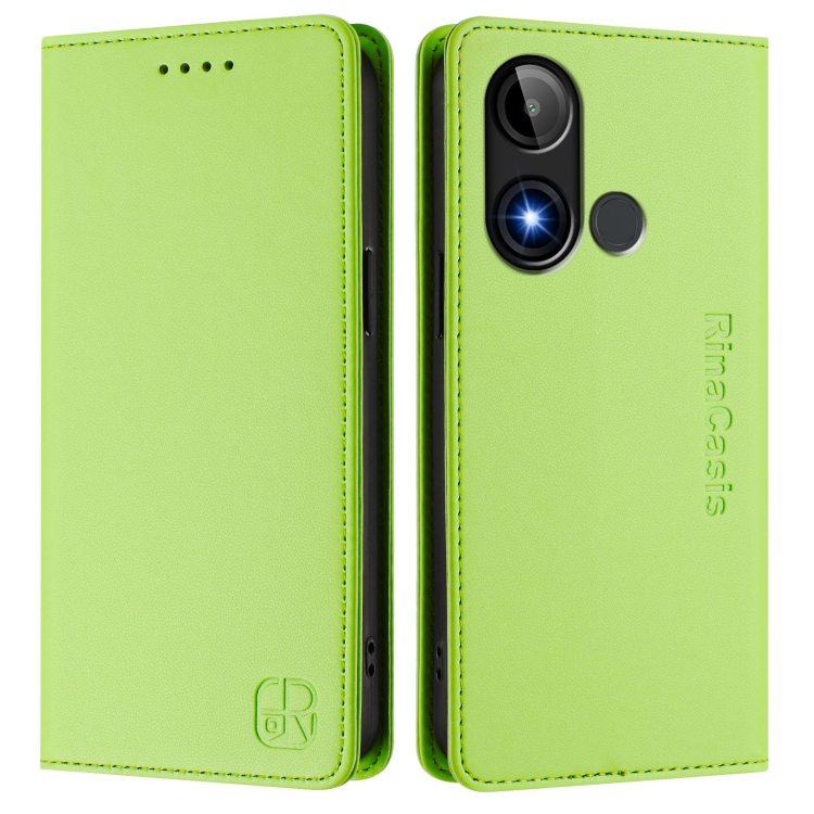 Funda de Cuero RFID con Doble Pliegue y Succión Magnética para Blu C9 RC01 (Verde Hierba)
