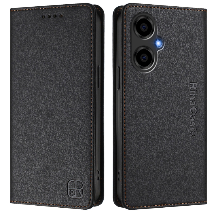 Funda de Cuero RFID Blu G64 Rc01 con Doble Pliegue y Succión Magnética (Negro)