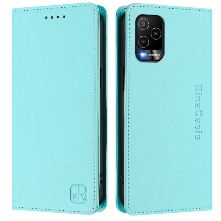 Funda de Cuero RFID con Doble Pliegue y Succión Magnética para Blu View 5 Pro Rc01 (Verde Menta)