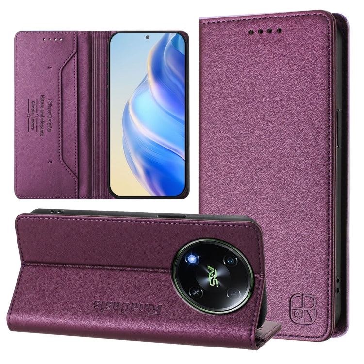 Funda de Cuero Rfid para Teléfono Itel Rs4/S666Ln Rc01 con Doble Pliegue y Succión Magnética (Violeta)