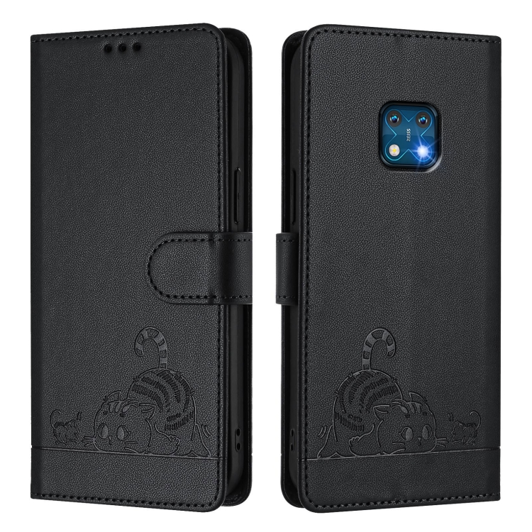 Funda de Cuero Rfid con Relieve de Gato y Rata para Nokia Xr20 con Cordón (Negro)