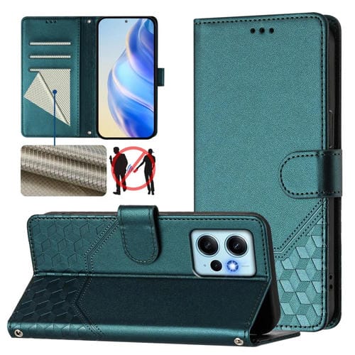 Funda de Cuero Rfid con Relieve de Panal Global para Redmi Note 12 4G (Verde Pavo Real)