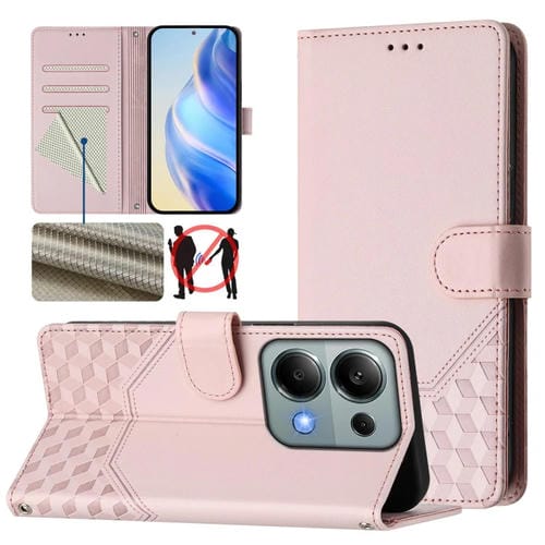 Funda de Cuero Rfid con Relieve de Panal Global para Redmi Note 13 Pro 4G (Rosa)